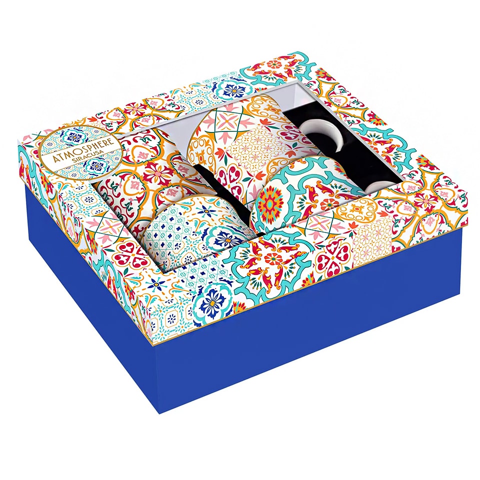 4 darab porcelán kávésbögre ablakos díszdobozban a neves olasz EasyLife-tól. Vidd haza a napsütötte Szicília hangulatát minden reggelivel!