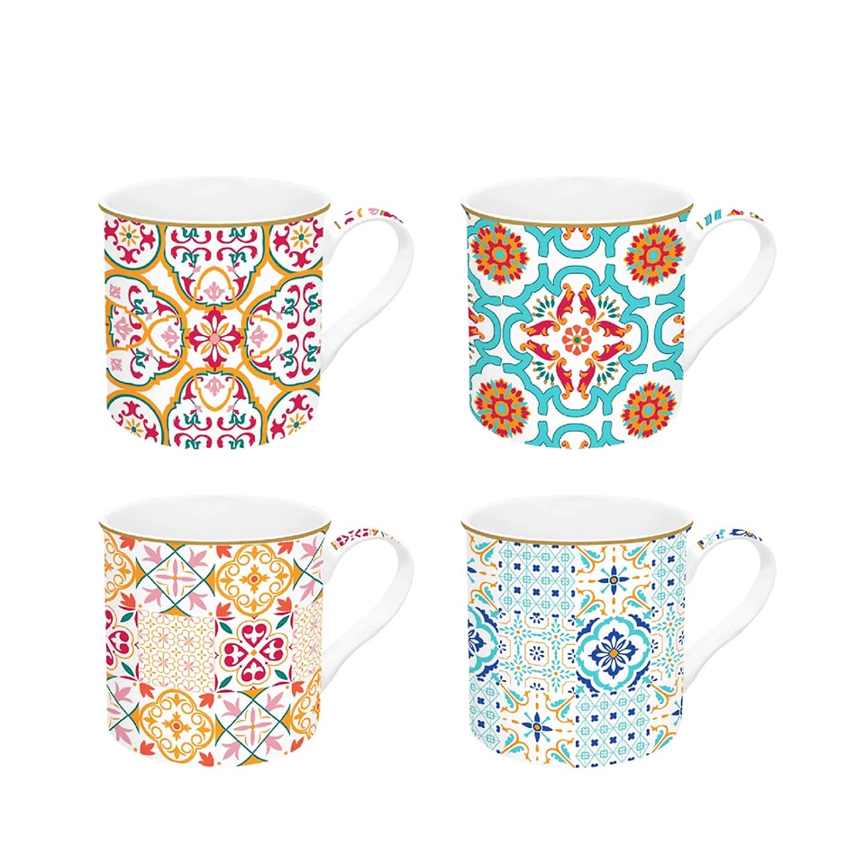 Az igazi dél olasz stílusú Sicily kávésbögre készlet négy különböző mintájú, élénk színű porcelán bögréből áll, amelyeket a szicíliai, azon belül is Siracusa csempemintái és mediterrán virágmotívumai ihlettek. A tengerparti kávézók hangulatát idéző dizájn vidám, mégis elegáns – tökéletes választás, ha szereted az élettel teli, mediterrán stílust, és egy kis színt vinnél a konyhádba.